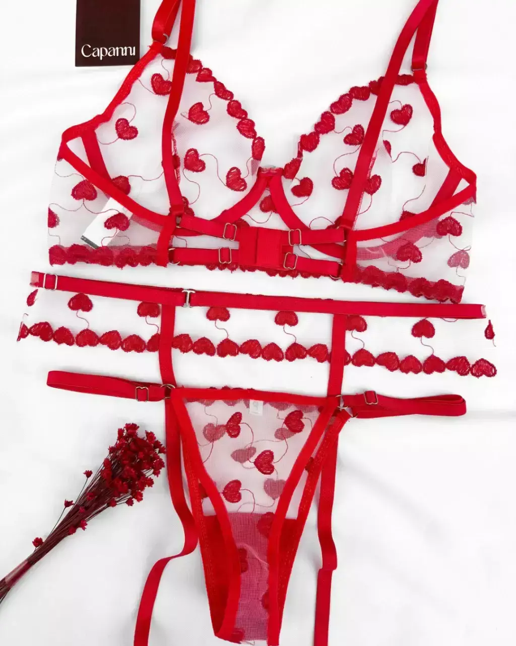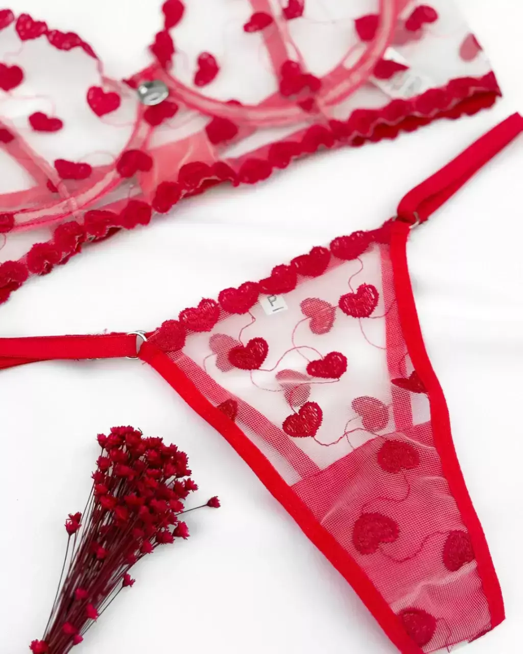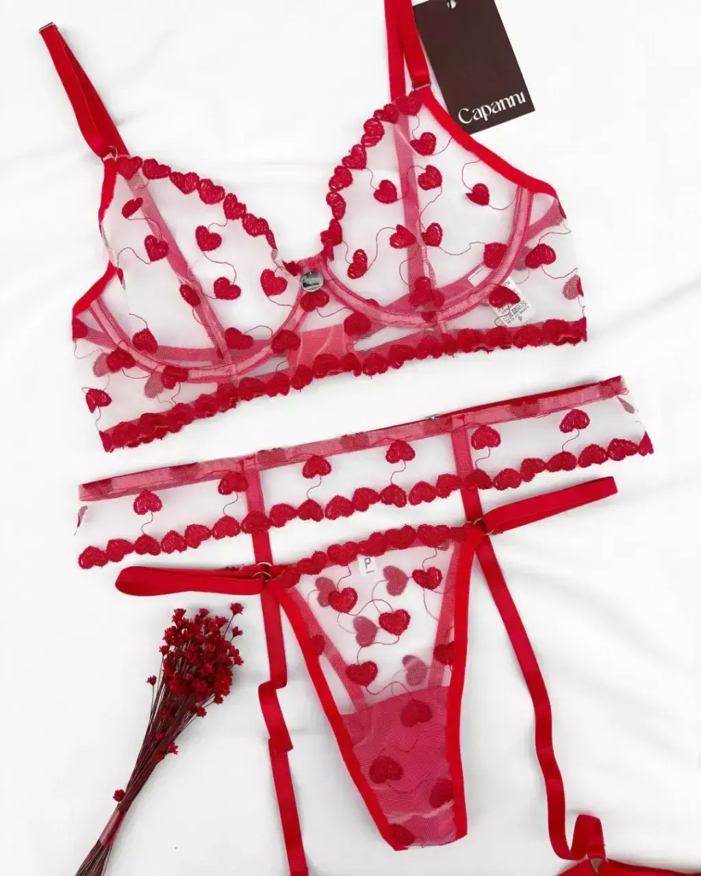 Confeccionado inteiramente em tule bordado, ele traz um toque artesanal e delicado que valoriza o corpo sem perder a ousadia.
